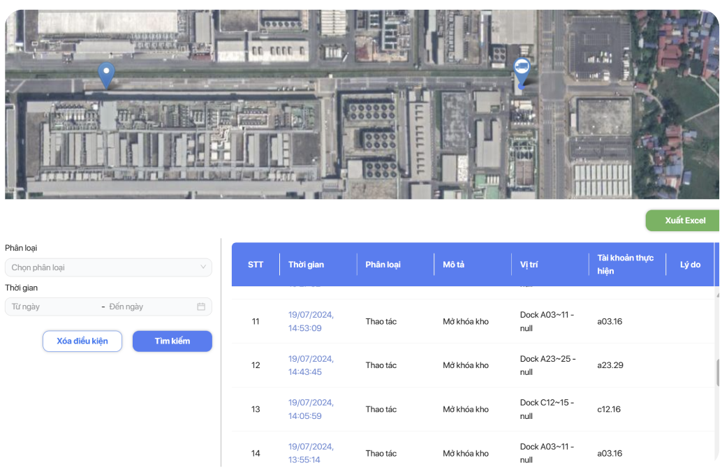 Quản lý có thể giám sát được thời gian đóng/ mở thùng hàng của từng vị trí giao nhận hàng, kết hợp với định vị GPS cho phép quản lý có thể theo dõi chính xác xe hàng có đang giao đúng vị trí hay không